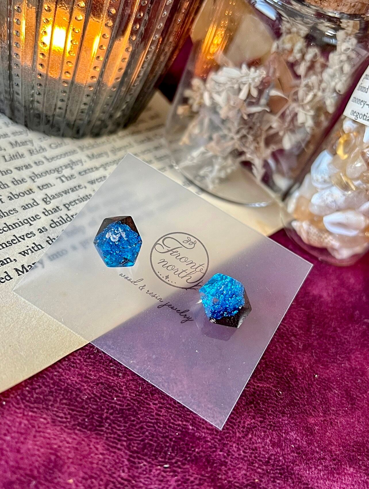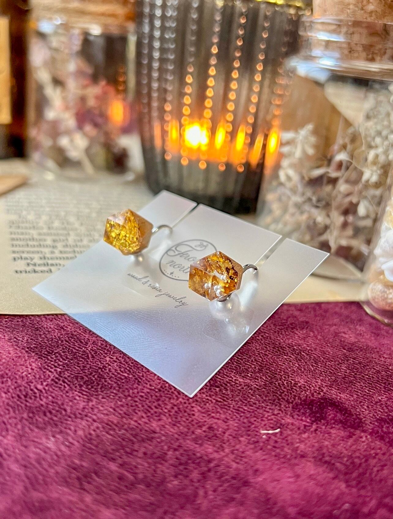 多面体によって光輝く銀箔(銀箔染め)と、温かみのあるウッドが合わさったピアス&イヤリングです。