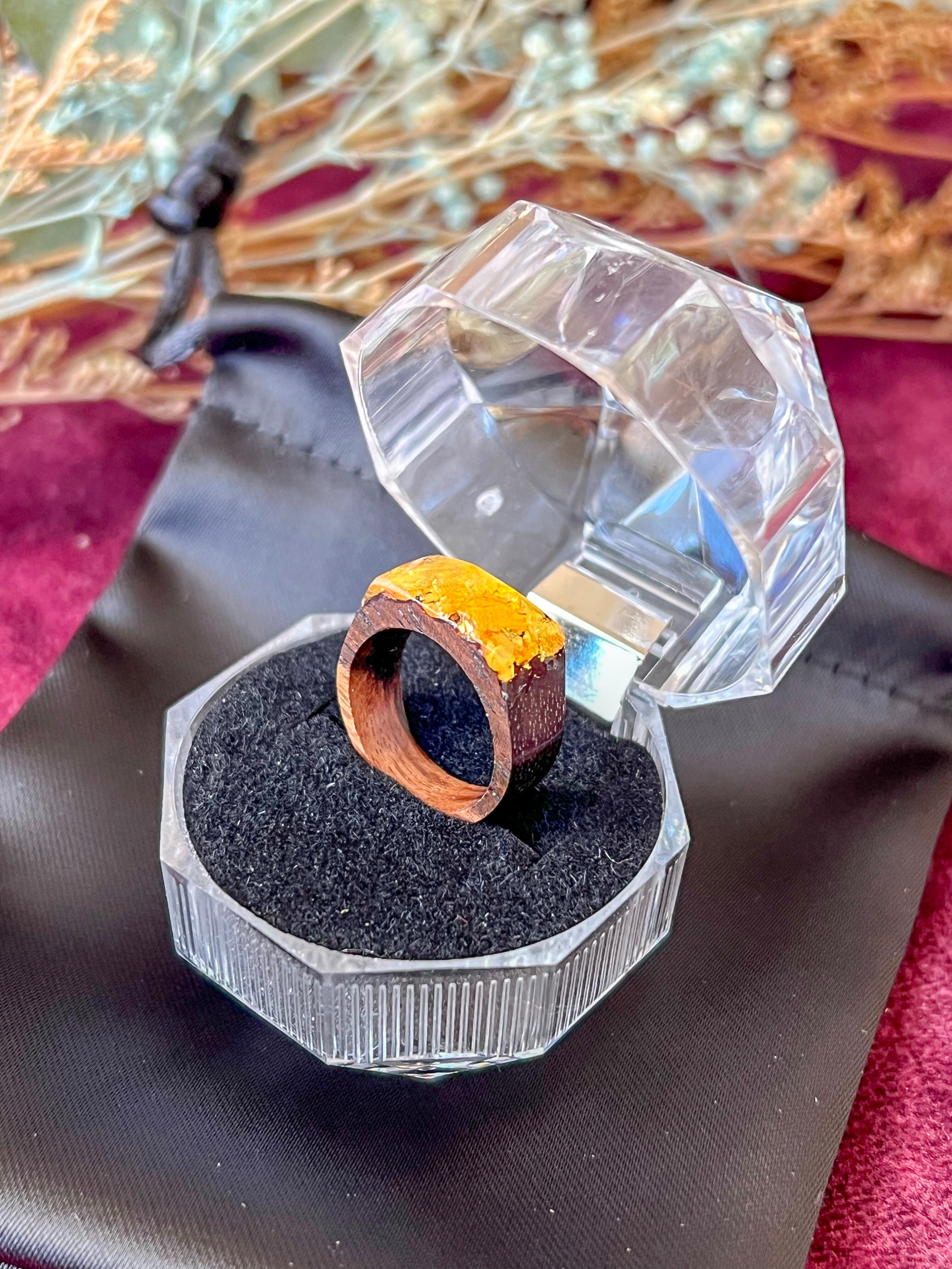 金箔を封入したウッドレジンのピンキーリングです。